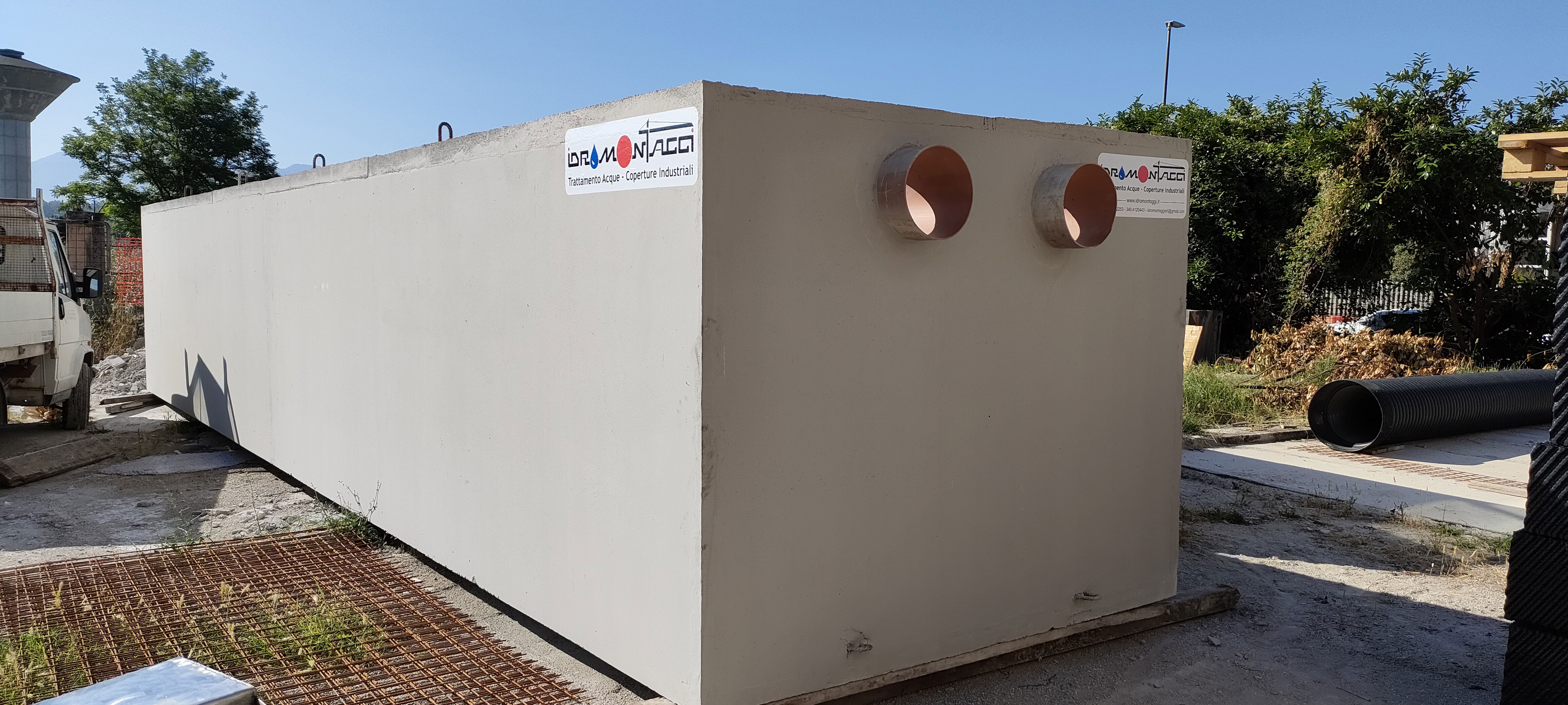 - Impianti di trattamento delle acque (Disoleatori in continuo e con bypass, prima pioggia, depuratori biologici, degrassatori, Sollevamenti, Antincendio, Imhoff, accumulo su misura, laminazioni, e altri)